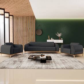 Com bastante personalidade e beleza ímpar o Kit Sofá 3 Lugares 180cm Com 2 Poltronas Molino Pés D'ouro D02 Linho Cinza Escuro - Lyam Decor vem para requintar ainda mais sua decoração. Amplamente sofisticado, é ideal se você está buscando por peças elegantes e confortáveis. Possui acabamentos impecáveis, é estruturado em madeira de eucalipto tratado, unidas com grampos galvanizados, base envernizada e pés de alumínio com metalização na cor D’Ouro que o tornam ainda mais atraente e convidativo.