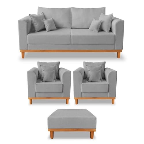 modelo de referência em elegância e . O Kit Beny +Puff Isa é um luxo e vai tornar o seu ambiente ainda mais lindo e aconchegante. Conta com almofada no encosto para trazer maior conforto e também acompanha almofadas de decoração para dar aquele toque final de bom gosto e sofisticação. O seu design é incrível para todos os ambientes, sua base e pés de madeira trazem a sustentação necessária e o tecido de alta qualidade fazem dele a combinação ideal para o seu ambiente!