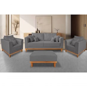modelo de referência em elegância e . O Kit Beny +Puff Isa é um luxo e vai tornar o seu ambiente ainda mais lindo e aconchegante. Conta com almofada no encosto para trazer maior conforto e também acompanha almofadas de decoração para dar aquele toque final de bom gosto e sofisticação. O seu design é incrível para todos os ambientes, sua base e pés de madeira trazem a sustentação necessária e o tecido de alta qualidade fazem dele a combinação ideal para o seu ambiente!