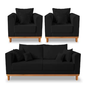 Kit Sofá 03 Lugares + 02 Poltronas Beny Viena Suede - Madeira Prima Deccor