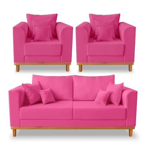Conheça o Kit de Sofá e Poltronas Beny Viena, modelo de referência em elegância e . O Kit Beny Viena é um luxo e vai tornar o seu ambiente ainda mais lindo e aconchegante. Conta com almofada no encosto para trazer maior conforto e também acompanha almofadas de decoração para dar aquele toque final de bom gosto e sofisticação. O seu design é incrível para todos os ambientes, sua base e pés de madeira trazem a sustentação necessária e o tecido de alta qualidade fazem dele a combinação ideal para o seu ambiente!
