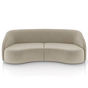 Design bipartido com assentos e braços curvos.