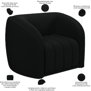 Indicado para uso residencial, sua limpeza deve ser feita com pano umedecido em água limpa, sem esfregar, não utilizar produtos abrasivos, desengordurantes, álcool ou solvente. Nunca sentar nos braços ou encosto do produto.