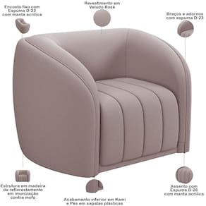 Indicado para uso residencial, sua limpeza deve ser feita com pano umedecido em água limpa, sem esfregar, não utilizar produtos abrasivos, desengordurantes, álcool ou solvente. Nunca sentar nos braços ou encosto do produto.