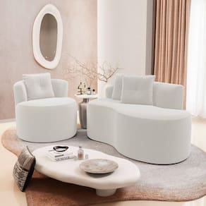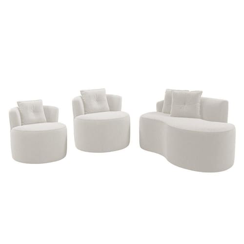 Kit Sofá E 02 Poltronas Orgânicas Living Bob Com Almofadas Bouclê Off White - Desk Design