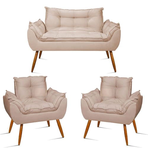 Kit Sofá Namoradeira Opala + 2 Poltronas Opala Balaqui Decor Cor:bege