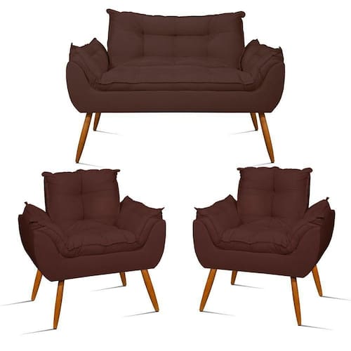 Kit Sofá Namoradeira Opala + 2 Poltronas Opala Balaqui Decor Cor:marrom
