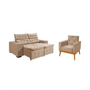 Tipo: Conjunto Modelo: Poltrona Florença e Sofá Bari Tecido: Veludo Cor: Bege