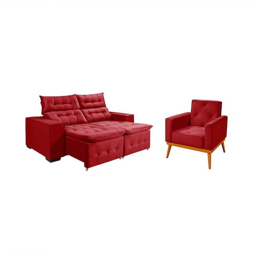 Tipo: Conjunto Modelo: Poltrona Florença e Sofá Bari Tecido: Veludo Cor: Vermelho