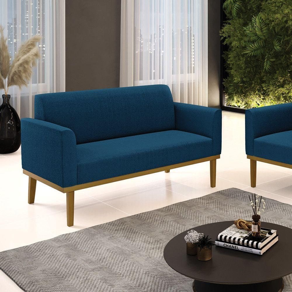 kit sofa retro namoradeira 2 lugares e 02 poltronas julia suede azul tiffany d rossi
