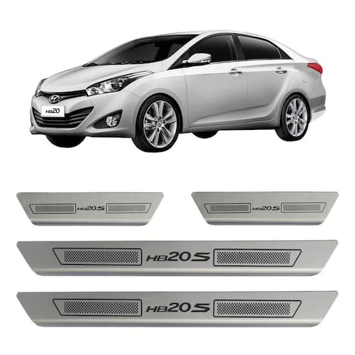 Kit soleira de porta aço inox escovado hb20s todos Soleira de porta em aço inox com acabamento em aço escovado. Proporciona uma área extra de preservação para a pintura de seu carro. Aumentando o cuidado contra riscos e arranhões, e ainda dando um estilo esportivo ao seu veículo. Kit de 4 soleiras para o hb20s 4 portas todos anos. Características: - feito em aço inox - modelo específico para o veículo - cor: prata e cinza - referência: sl054 - aplicação: autocolante fita inclusa Itens inclusos: - duas 2 soleiras grandes para a porta dianteira. - duas 2 soleiras pequenas para a porta traseira. Dimensões - comprimento: 45 cm maior / 20 cm menor - largura: 4,5 cm todos - espessura: 1 cm todos de 30 dias para defeitos de fabricação. Marca: Não Informado