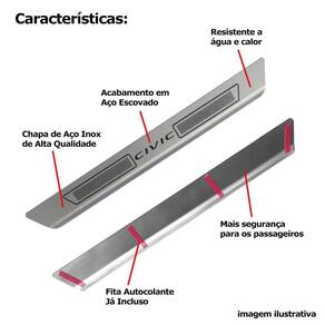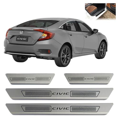 Kit soleira de porta aço inox escovado honda civic todos Soleira de porta em aço inox com acabamento em aço escovado. Proporciona uma área extra de preservação para a pintura de seu carro. Aumentando o cuidado contra riscos e arranhões, e ainda dando um estilo esportivo ao seu veículo. Kit de 4 soleiras para o honda civic todos os anos. Características: - feito em aço inox - modelo específico para o veículo - cor: prata e cinza - referência: sl074 - aplicação: autocolante fita inclusa Itens inclusos: - duas 2 soleiras grandes para a porta dianteira. - duas 2 soleiras pequenas para a porta traseira. Dimensões - comprimento: 45 cm maior / 20 cm menor - largura: 4,5 cm todos - espessura: 1 cm todos de 30 dias para defeitos de fabricação. Marca: Não Informado