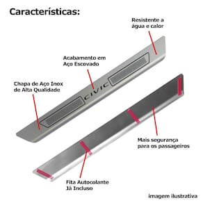 Kit soleira de porta aço inox escovado honda civic todos Soleira de porta em aço inox com acabamento em aço escovado. Proporciona uma área extra de preservação para a pintura de seu carro. Aumentando o cuidado contra riscos e arranhões, e ainda dando um estilo esportivo ao seu veículo. Kit de 4 soleiras para o honda civic todos os anos. Características: - feito em aço inox - modelo específico para o veículo - cor: prata e cinza - referência: sl074 - aplicação: autocolante fita inclusa Itens inclusos: - duas 2 soleiras grandes para a porta dianteira. - duas 2 soleiras pequenas para a porta traseira. Dimensões - comprimento: 45 cm maior / 20 cm menor - largura: 4,5 cm todos - espessura: 1 cm todos de 30 dias para defeitos de fabricação. Marca: Não Informado Ean: 7896729937603