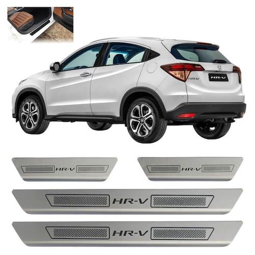 Kit soleira de porta aço inox escovado honda hrv todos anos soleira de porta em aço inox com acabamento em aço escovado. Proporciona uma área extra de preservação para a pintura de seu carro. Aumentando o cuidado contra riscos e arranhões, e ainda dando um estilo esportivo ao seu veículo. Kit de 4 soleiras para o honda hr-v todos os anos. Características: - feito em aço inox - modelo específico para o veículo - cor: prata e cinza - referência: sl080 - aplicação: autocolante fita inclusa