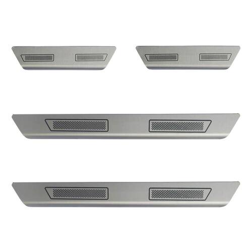 soleira de porta em aço inox com acabamento em aço escovado. Proporciona uma área extra de preservação para a pintura de seu carro. Aumentando o cuidado contra riscos e arranhões, e ainda dando um estilo esportivo ao seu veículo. Kit de 4 soleiras para o volkswagen t-cross 4 portas todos os anos. Características: