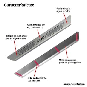 itens inclusos: - duas 2 soleiras grandes para a porta dianteira. - duas 2 soleiras pequenas para a porta traseira. Dimensões - comprimento: 45 cm maior / 20 cm menor - largura: 4,5 cm todos - espessura: 1 cm todos
