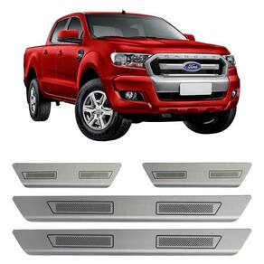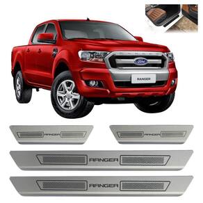Kit soleira porta aço inox escovado ford nova ranger Soleira de porta em aço inox com acabamento em aço escovado. Proporciona uma área extra de preservação para a pintura de seu carro. Aumentando o cuidado contra riscos e arranhões, e ainda dando um estilo esportivo ao seu veículo.