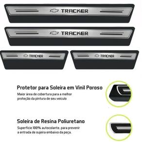 Kit Soleira Resinada Proteção Porta Chevrolet Tracker PrataEste produto é indicado para pessoas que amam o seu carro e querem deixar ele com um tom mais robusto, essa é a nova soleira lançamento modelo Platinum, com um detalhe sofisticado na cor prata, deixando assim seu carro mais atraenteInformações do Produto:O kit protetor de soleira também acompanha folhas de adesivo poroso recortadas especificamente nas medidas para o seu carro. Permitindo ir além da proteção da área plana. Irá proteger inclusive as bordas e ondulações da soleira do seu carro.Composto por:4 peças Soleira Resinada4 peças Adesivo Poroso Onde eles dão acabamento ao beiral das portas Soleira Platinum agora o seu carro merece o melhor Produto: Soleira Modelo PlatinumMaterial: ResinaTamanho Soleiras:Dianteiras:Largura:3cmComprimento:46cmTraseirasLargura:3cmComprimento:23cmAdesivos Porosos Acabamento:Dianteiros:Largura: 9cmComprimento: 57cmTraseiros:Largura: 9cmComprimento: 27cmImportante:Imagens meramente ilustrativas.A Prime Automotive recomenda que a instalação seja feita por profissional especializado e não se responsabiliza pelo mau uso do produto. Marca: Rvt