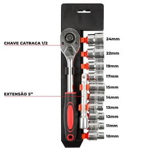 Kis soquetes 10 a 24mm com catraca 1/2 extensão 12 peças sextavado eda O jogo de soquetes com 12 peças é a solução definitiva para quem exige desempenho com máxima praticidade. O que você recebe: - 1 chave catraca de 1/2 resistente e ergonômica - 1 extensão de 5 para alcançar áreas difíceis - 10 soquetes sextavados: 10, 11, 12, 13, 14, 15, 17, 19, 22 e 24 mm - fabricado em aço carbono: durabilidade e resistência incomparável - encaixe padrão de 1/2 - compatível com diversas aplicações Pronto para tudo: do seu carro à sua oficina Seja para manutenção automotiva, instalação, reformas ou trabalhos em casa, este conjunto é ideal para: - reparos automotivos - trabalhos mecânicos pesados - serviços rápidos no dia a dia Vantagens reais que você vai sentir: - força e encaixe preciso, sem folgas nem desgaste precoce - organização prática, com suporte rígido e visual - alta resistência ao uso contínuo e à corrosão - versatilidade para profissionais e iniciantes faq 1. É compatível com outras marcas de catraca ou extensão Sim, o encaixe 1/2 é padrão e compatível com diversas ferramentas do mercado. 2. Serve para intenso Sim, é ideal tanto para profissionais da mecânica quanto para uso doméstico. 3. Os soquetes são sextavados Sim, todos os soquetes são sextavados, oferecendo maior área de contato e torque. 4. O material é resistente à ferrugem Sim, o aço carbono tem excelente resistência e pode ser lubrificado para maior durabilidade. 5. O suporte organizador vem junto Sim o kit vem em suporte rígido para armazenamento prático e seguro. Marca: Não Informado Ean: 7895315022327