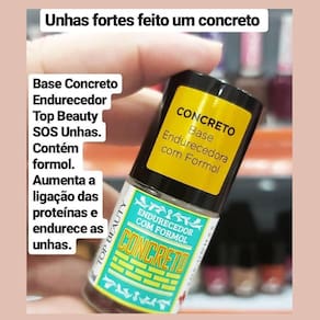 A Base Concreto Endurecedor com Formol Top Beauty SOS Unhas aumenta a ligação das proteínas e endurece as unhas.