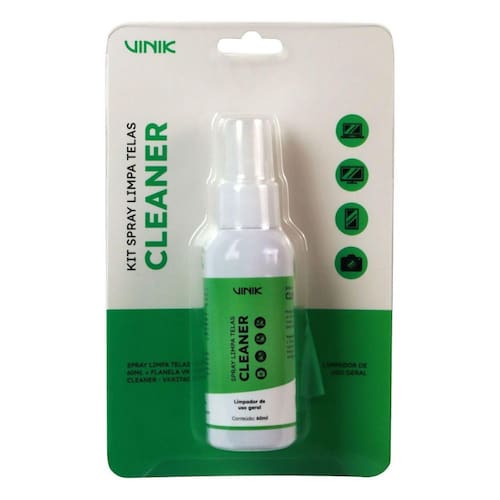 Principais aplicações O Spray Limpa Telas Vinik é indicado para a limpeza de notebooks, TVs, tablets, smartphones, monitores de PC, vidros, plásticos, entre outros.