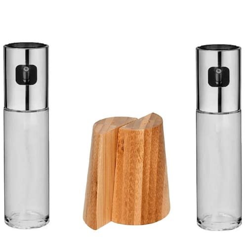 O Kit Vinagre e Azeite Spray Saleiro Pimenteiro - Galheteiro é perfeito para quem deseja dar um toque especial às saladas, frigideiras e onde mais for necessário. Com esse conjunto, você poderá borrifar vinagre, azeite, shoyo ou limão espremido de forma prática e econômica, evitando desperdícios.