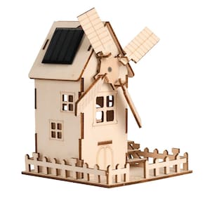 Material: tronco, energia solar Dimensões: 12 × 12 × 17 cm Peso: 300 g Experiência de energia solar — Casa de moinho de vento de madeira alimentada por um painel solar, demonstrando energia renovável e movimento através da luz solar direta. Ferramenta de aprendizagem STEM — ajuda as crianças a explorar conceitos de energia solar, física e engenharia, inspirando interesse em energia sustentável. Construção durável em madeira — Feita de madeira natural com painel solar e lâminas giratórias, aproximadamente 12 × 12 × 17 cm, peso 300 g, resistente e reutilizável para vários projetos. Projeto de montagem DIY — O modelo fácil de construir incentiva a criatividade, a resolução de problemas e o aprendizado prático, ao mesmo tempo que torna a ciência divertida. Educacional e decorativo — Funciona tanto como um experimento de aprendizado quanto como um modelo de exibição criativo, adequado para salas de aula, workshops ou atividades de estudo em casa.