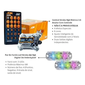 Par De Faróis Led Strobo Ajk Rgb Digital 3w Endereçável