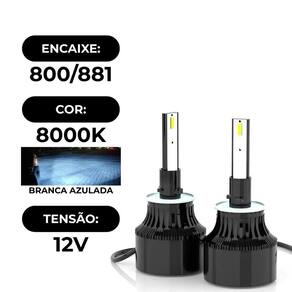 Características Técnicas Encaixe: compatível com soquetes H27 / 880 / 881 plug & play Chip de LED: CSP Flip, com 2 LEDs por lâmpada, garantindo emissão de luz completa de 360 Potência: 24w por unidade 48W no par, 3200lúmens por lâmpada, total de 6400lúmens Fluxo luminoso: cerca de 3200lúmens por lâmpada, total de 6400lúmens no par Temperatura de cor: 8000K branco azulado, estilo ice blue / xenon Tensão de operação: 12V DC Classificação IP67 - alta resistência à água, pó e impactos Dissipação térmica: corpo em alumínio com cooler ventoinha interna e dissipador de calor integrados Temperatura de operação: -40C a +95C Diferenciais Iluminação 360: graças ao design CSP Flip, oferece distribuição uniforme e maior alcance de luz Estética moderna e estilosa: a cor 8000K proporciona efeito visual ice blue, agradando consumidores que buscam diferenciação automotiva Alta resistência e durabilidade: com IP67, cooler interno e corpo metálico, é ideal para condições adversas e uso contínuo Instalação simples: tipo plug & play, compatível com a maioria dos veículos sem necessidade de adaptadores Conteúdo da Embalagem 2 lâmpadas LED um par Recomendações de Uso Instalação por profissional: requerida para garantir desempenho e evitar danos elétricos Verifique compatibilidade do soquete: o produto se encaixa em soquetes H27/880/881, normalmente utilizados em faróis de milha, DRL e neblina