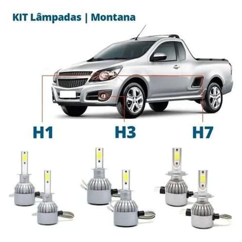 Kit super led montana - farol alto, baixo e milha Adquira já as lâmpadas automotivas com melhor custo benefício do mercado. Kit 1 par de lâmpadas super led h7 + 1 par de lâmpadas h1 + 1 par de lâmpadas h3 6000k 01 kit h7- vai para o farol baixo 01 kit h1- vai para o farol alto01 kit h3 vai para o farol de milha 03 meses de garantia Características: Lâmpada super led 2d com chip de alta tecnologia Duração estimada de 50.000 horas Cor: branco ( 6000 k ) Tensão de entrada: 10 30 v Dissipador de calor em alumínio - não tem cooler Consumo: 30w por lâmpada Fluxo luminoso: 3000 lúmens Resistente a temperatura e vibração Plug and play (não necessita corte de fios para a instalação) Confirme o encaixe do seu carro antes da compra Recomendamos que a instalação seja feita por profissional especializado e não nos responsabilizamos pelo mau uso do produto. Conteúdo da embalagem:- 6 super leds- 6 chicotes- 3 manual do usuário Kit completo para instalação