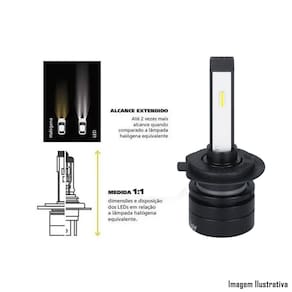 - Medida 1:1: Dimensão equivalente a lâmpada halógena.