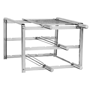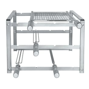 São suportes em AÇO INOXIDÁVEL para churrasqueiras de alvenaria, com 3 níveis de altura, para girar e fixar Espetos e Grelhas GIRAGRILL. Algumas características exclusivas ajudam a melhorar tecnicamente o churrasco: