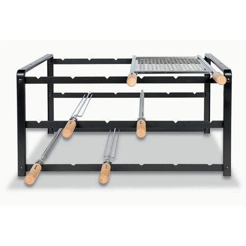 3 – Armação do Kit em forma de PÓRTICO para evitar sua exposição direta sobre o calor da brasa. Acabamento em aço reforçado, com pintura eletrostática.
