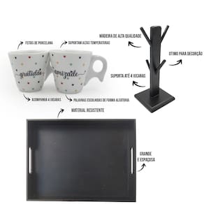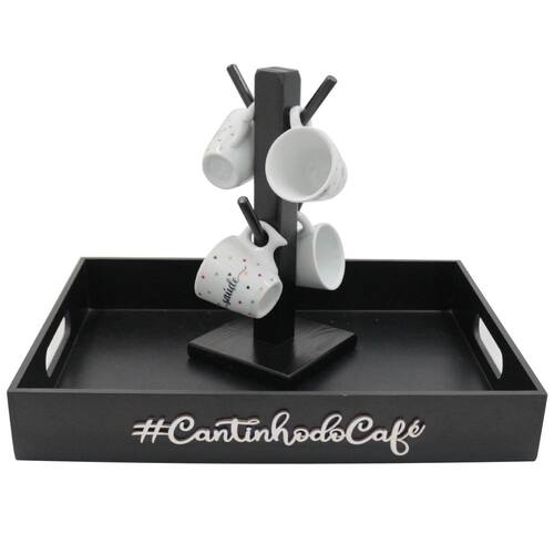Kit suporte 4 xicaras expresso bandeja cantinho do café frases espaço