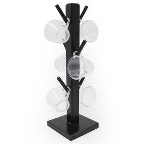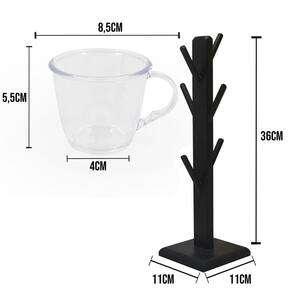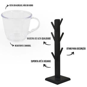 Kit suporte 6 xicaras acrílico cristal café espaço cantinho Composição do kit; 6 xícaras 1 suporte de xícaras