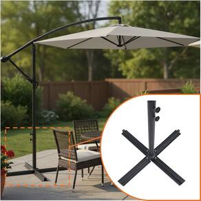 Para garantir a estabilidade total, esta base deve ser utilizada com pesos sobre ela. Recomendamos o uso de placas de concreto, pedras decorativas ou bases de água/areia (não inclusas) posicionadas sobre as hastes para lastrear o ombrelone de forma segura.