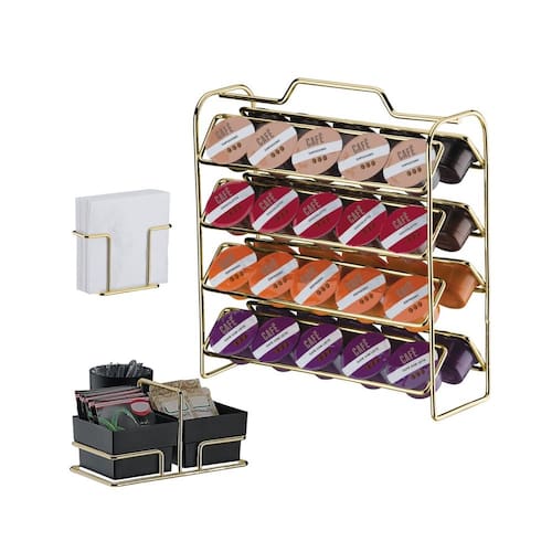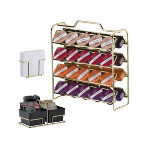 Material (Aramado): Aço CarbonoMaterial (Potes): PlásticoCor/Acabamento (Aramado): Dourado BrilhosoCor/Acabamento (Potes): Preto FoscoCapacidade (Porta cápsulas): 40 cápsulas Três CoraçõesMedidas e Peso: