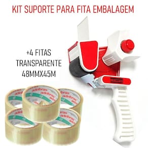 Kit Suporte p/Fita de Embalagem + 4 Fitas transparente 48mmx45m
