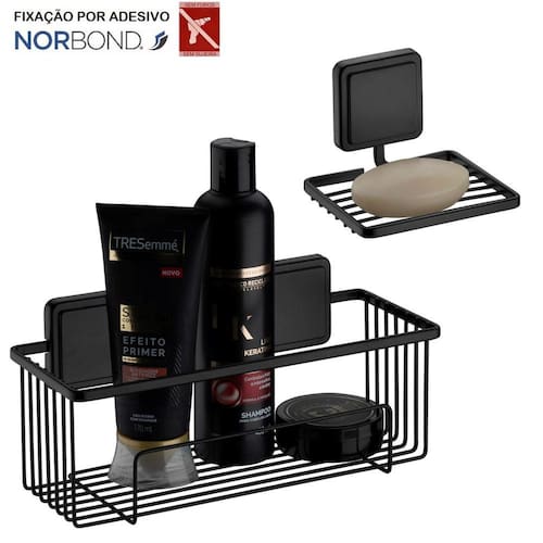 KIT PORTA SHAMPOO + SABONETEIRA ADESIVO