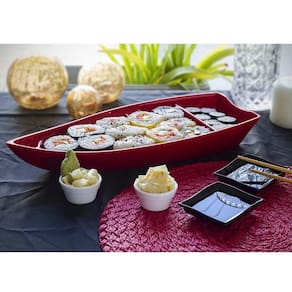 Kit sushi com 1 barco sushi m 1 l preto, 2 molheiras shoyu 60 ml vermelhas e 2 ramequins cheff 30 ml brancos em polipropileno Descrição: O kit sushi vemplast é ideal para presentear ou até para uso próprio. Com ele você poderá servir uma refeição oriental saborosa, de maneira atrativa, tornando o momento ainda mais especial. O kit sushi vemplast faz parte da linha conjuntos e kits, que foi desenvolvida para atender melhor o mercado de presentes e em oferecer ainda mais praticidade ao consumidor. Produzido em polipropileno, material resistente, que dispensa o uso de descartáveis, contribuindo para o meio ambiente e gerando menos custos com reposição. Ideal para presentear alguém especial Diversas opções de cores Produto livre de bpa bisfenoal a Material 100% reciclável Recomendações de uso: Nunca utilize produtos abrasivos na lavagem Lavagem apenas com bucha macia parte amarela Evitar passar utensílios que possam riscar o produto Pode ser lavado em lava louças Pode ser levado ao microondas Pode ser utilizado em freezer Especificações técnicas de cada item: Barco sushi m: Altura: 5cm Largura: 16cm Comprimento: 38cm Peso: 0,280 Capacidade: 1 l Molheira shoyu: Altura: 1,9cm Largura: 9cm Comprimento: 7,5cm Peso: 0,020 Capacidade: 60 ml Ramequim cheff : Altura: 2,02cm Diâmetro: 5,5cm Peso: 0,015 Capacidade: 30 ml Material fabricação: polipropileno Temperatura: suporta de -10ºc até 60ºc Linha: conjuntos e kits Marca: vemplast Contém: 1 barco sushi m 1 l preto 2 molheiras shoyu 60 ml vermelhas 2 ramequins cheff 30 ml brancos Imagens meramente ilustrativas Ean: 7898606178512