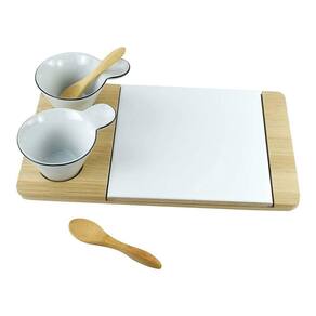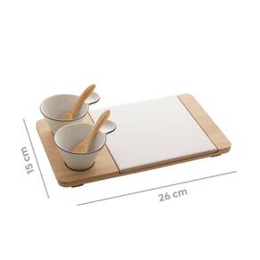 Conteúdo da embalagem: 1 Bandeja 15x26cm, 2 Molheiras, 2 Colheres