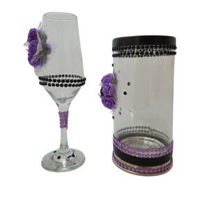 Kit Taça e Porta Vela Maria Mulambo Rosas Vidro Kit Taça e Porta Vela Maria Mulambo Rosas Vidro