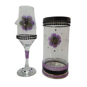 Kit Taça e Porta Vela Maria Mulambo Rosas Vidro Kit Taça e Porta Vela Maria Mulambo Rosas Vidro