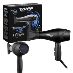 Secador Taiff Tourmaline Íon 2100W O secador Tourmaline combina a emissão de íons negativos com o revestimento em cerâmica. Seu design é focado na ergonomia para facilitar o manuseio durante o uso prolongado.