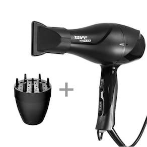 Secador de Cabelo Taiff New Black 1700W 127 Volts com Difusor de Cachos A Taiff conhece bem a vaidade da mulher, por isso traz o secador New Black com 1.700W de potência, 6 combinações de velocidade e temperatura, inclusive ar frio, e emissão de mais de 67 milhões de íons negativos por cm³ durante o uso. Com ele você muda o visual em pouco tempo, e vai ficar com um penteado digno de elogios, pois o New Black da Taiff elimina o efeito frizz dos fios, tornando o resultado final muito mais bonito e duradouro.