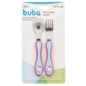O Kit Talher Unicórnio da Buba inclui um garfo e uma colher com cores e desenhos divertidos para atrair a atenção na hora da papinha. Em formato ideal para os pequenos segurarem, possuem pontas arredondadas e material em aço inoxidável, tornando-os mais resistentes, higiênicos e seguros. A linha de alimentação da Buba traz itens práticos que facilitam a vida das mães e acompanham as diversas fases da criança, contribuindo para um crescimento saudável.