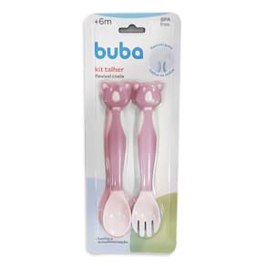 DESCRIÇÃO DO PRODUTOO Kit Talher Flexível e Termos sensível da Buba é ideal para o bebê aprender a se alimentar sozinho, pois os talheres são maleáveis, podendo ser direcionados tanto para a direita quanto para a esquerda, o que facilita a auto alimentação. Além disso, mudam de cor, alertando caso o alimento esteja muito quente. Recomendações: Este produto não pode ser fervido. Pode ir à lava-louças. Lave bem antes do primeiro uso com água corrente e sabão neutro. Manter em local seco, longe do alcance do sol. Examinar regularmente o estado de todas as peças do produto. Se apresentar dano ou sinal de desgaste, descarte o produto imediatamente. Realizar o descarte adequado dos sacos plásticos, fitas adesivas, fechos, etc. Este produto poderá apresentar variação de cores e detalhes.CARACTERÍSTICAS TÉCNICASConteúdo da Embalagem: Kit Colher e Garfo Dimensões Aproximadas do Produto: 15cm x 2cm x 3cm (Altura x Largura x Comprimento/Profundidade)Dimensões Aproximadas da Embalagem: 3 cm x 11 cm x 25 cm (Altura x Largura x Comprimento/Profundidade)Material/Composição: 53% Polipropileno, 42% Elastômero, 3% Aço Idade Mínima Recomendada: A partir de 6 Meses Marca: Buba Referência: 16238Outras informações: As cores podem variar entre as imagens mostradas acima e o produto. Imagens meramente ilustrativas.Produto não recomendado para crianças menores de 3 anos, por conter partes pequenas que podem ser engolidas ou aspiradas.Aviso: As informações e imagens divulgadas são de total responsabilidade do fabricante/fornecedor.Produto lacrado e disponível a pronta entrega para todo Brasil!APROVADO PELO INMETRO
