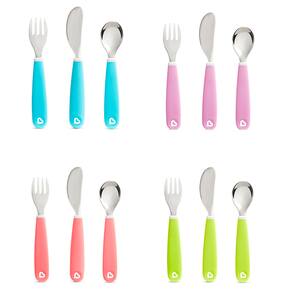 Conjunto de talheres roxos infantis da marca Munchkin, de alta qualidade e prático. Ideal para crianças.