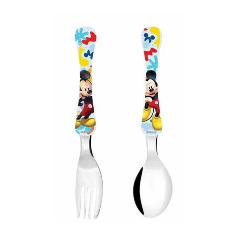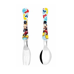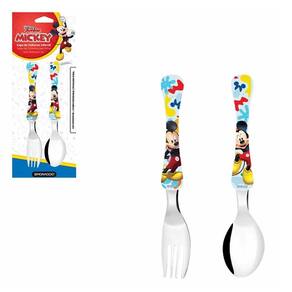 Conjunto de Talheres Mickey 2 Peças Garfo e Colher Inox Disney Infantil Simonaggio.