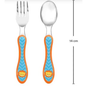 aprendendo a comer, o Kit Talher é composto por garfo e colher. Feitos em aço